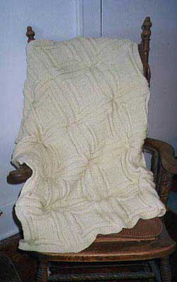 This 34-inch by 42.5-inch lap robe is made up of 20 squares. It is perfect for throwing over your legs on those cold winter nights of TV watching. The name comes from its square design. The combination of simple seed, stockinette and reverse stockinette stitches result in a design of 5 squares in each square. Its small size and simple pattern makes a nice project to take on vacation or do while riding in the car.